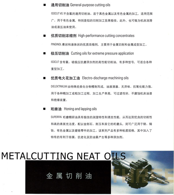 本公司专注于销售水性、油性润滑油,真空泵油,切削油,齿轮油热处理油,防锈油产品系列和润滑脂,如高速润滑油,超耐热温润滑脂等。为客户提供种类齐全的润滑产品的解决方案。